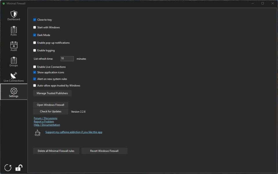 ● Конфиденциальность: Minimal Firewall полностью автономен, не передаёт данных во внешние сервисы.