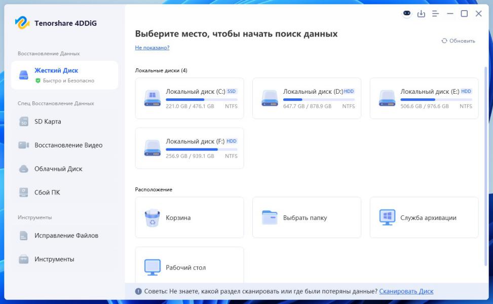 Tenorshare 4DDiG — это надёжное решение для восстановления потерянных или удалённых данных с различных устройств.