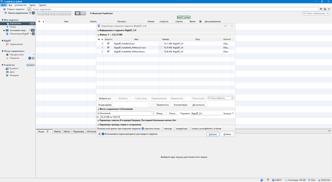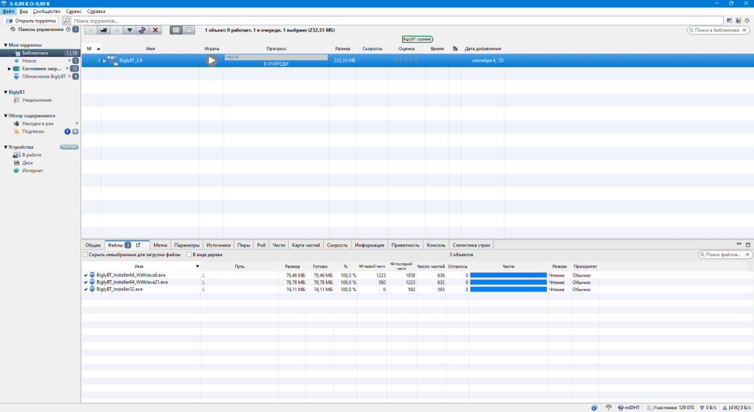 Azureus появился ещё в 2003 году как свободный BitTorrent-клиент на базе SWT (Eclipse Standard Widget Toolkit) и быстро завоевал популярность во всём мире. Позднее команда разработчиков представила проприетарное продолжение в виде Vuze, однако часть разработчиков решила вернуться к корням, оставив приложение свободным и независимым. Так родился BiglyBT — новый виток развития старой кодовой базы, но уже полностью под GNU GPL v2.0.