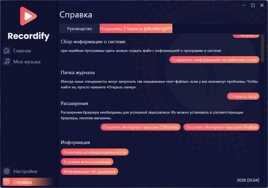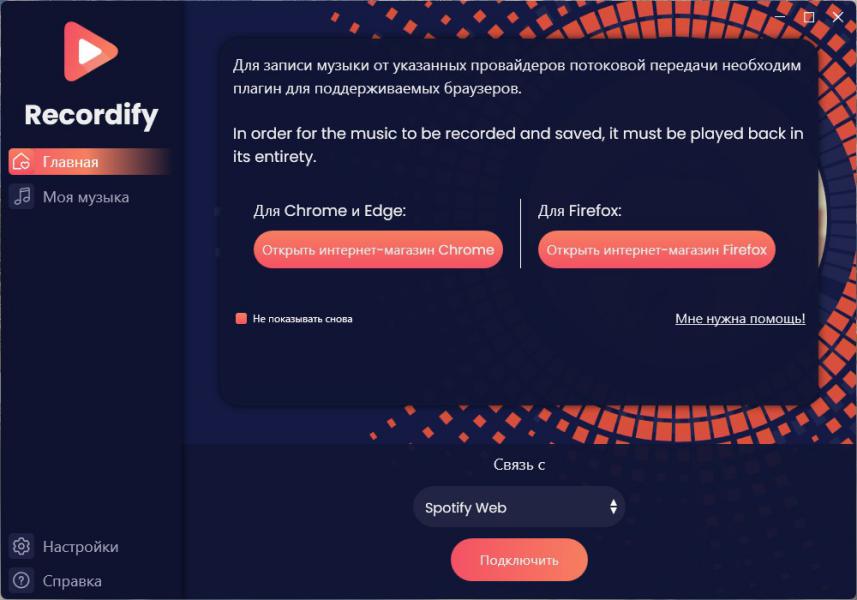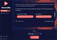 Recordify — это удобное и функциональное приложение для Windows, которое предназначено для записи аудио с потоковых сервисов. Программа поддерживает работу с такими популярными платформами, как Spotify, Amazon Music и YouTube, а также способна захватывать любой звук, который воспроизводится через динамики вашего компьютера. Записанный материал можно сохранить в форматах MP3, WAV или FLAC с высоким качеством.