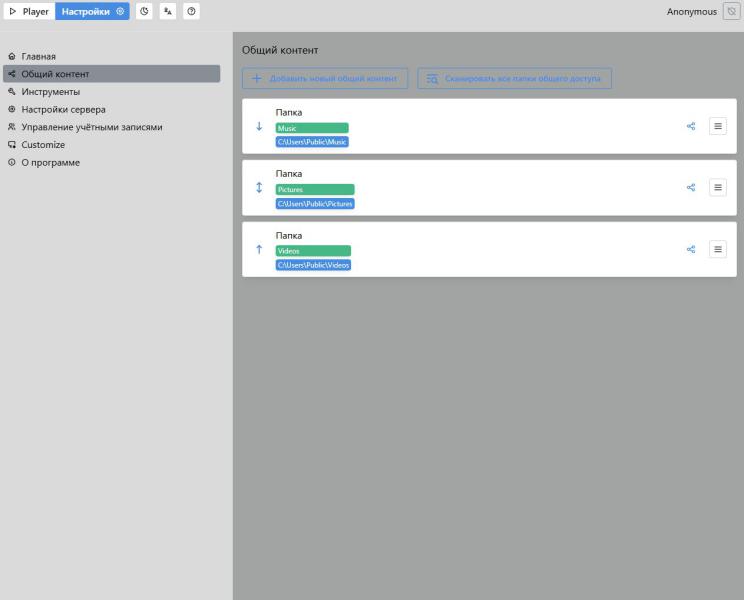 ● Доступ через браузер Подключайтесь к своим медиафайлам через любой веб-браузер и воспроизводите их прямо в интерфейсе или отправляйте на совместимые устройства.
