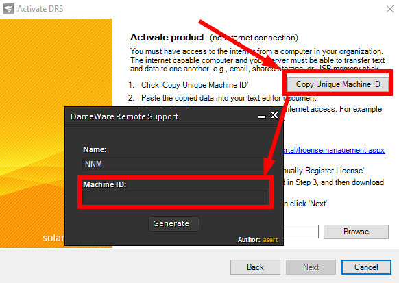 ● Установите RemoteSupportControl в ознакомительном (триальном) режиме. ● Запустите файл DwKeygen_RemoteSupportControl_MOD.exe. Вы увидите, как одновременно откроются два окна: окно для активации и окно кейгена. ● Выполните оффлайн активацию и закройте оба окна. ● Процесс завершен.