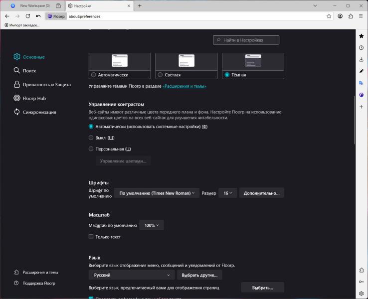 ● Гибкая кастомизация сайтов: Floorp позволяет изменять оформление веб-страниц, задавать собственные стили шрифтов и даже подменять данные браузера (User Agent).