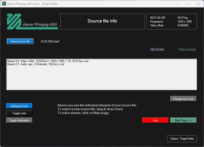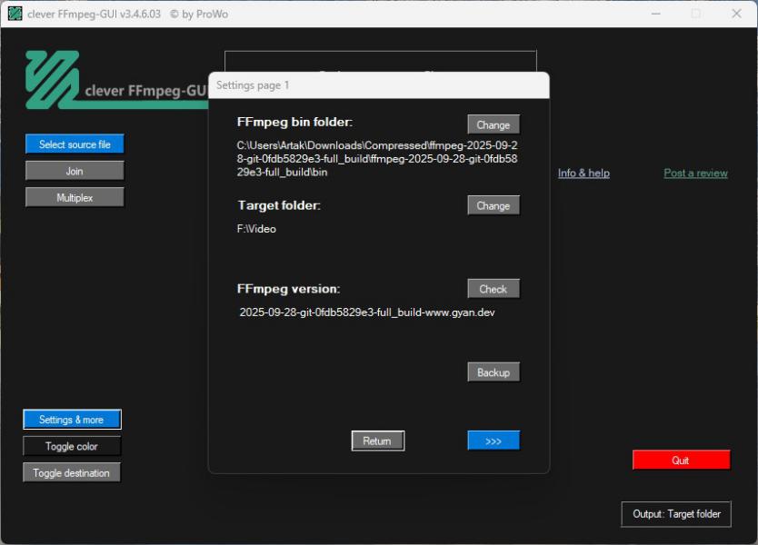 Clever FFmpeg GUI — это удобный графический интерфейс, разработанный для работы с мощным инструментом FFmpeg. Программа умеет обрабатывать аудио- и видеопотоки по отдельности, а затем объединять их в единый файл с помощью мультиплексирования. Она предоставляет функции автоматического распознавания потока, конвертации аудио, видео и субтитров, а также извлечения отдельных дорожек. Clever FFmpeg GUI поддерживает корректировку громкости и длительности звука, изменение высоты тона, автоматическую обрезку изображения, эффекты плавного затухания и нарастания аудио- и видеоматериалов, редактирование соотношения сторон, смену языка для звуковых дорожек и субтитров, а также настройку профилей кодеков x264 и hevc без перекодирования.