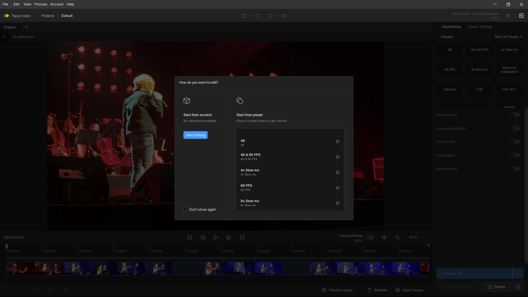 Topaz Video – это профессиональное программное обеспечение для улучшения видео с использованием искусственного интеллекта. Оно позволяет удалять шум с видео, снятого при низком освещении, повышать разрешение старых архивных записей до 4K, восстанавливать фокус и корректировать частоту кадров, создавая новые кадры практически из ничего.