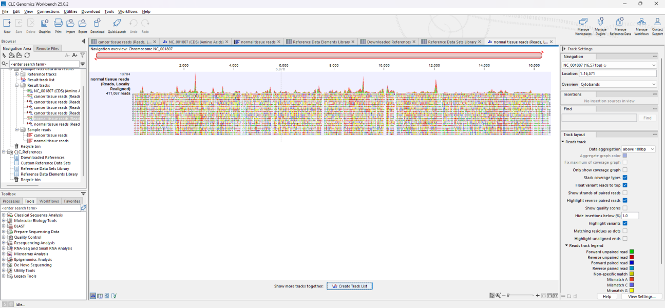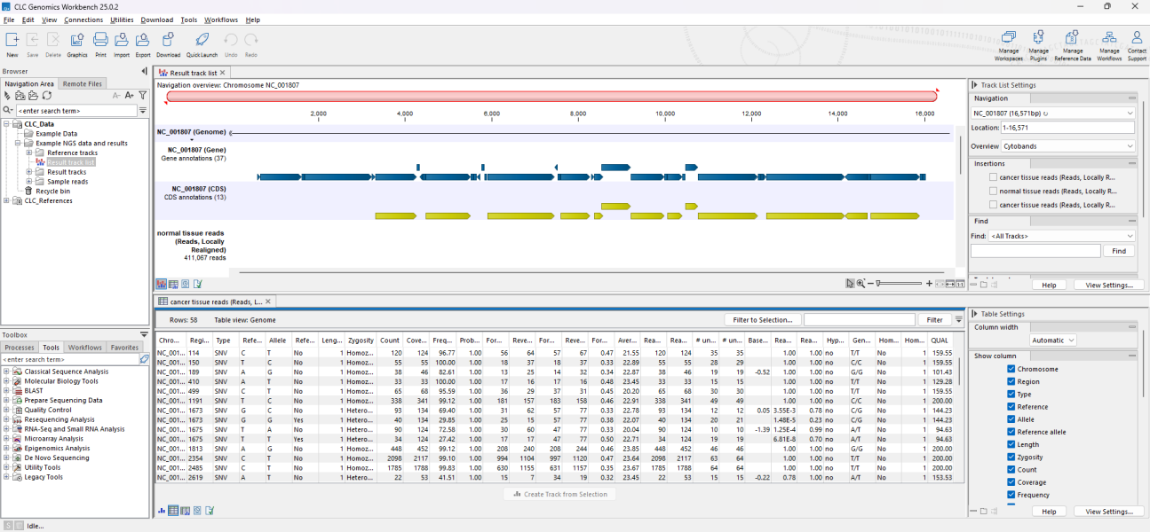 CLC Genomics Workbench — это современная и многофункциональная среда для анализа данных секвенирования нового поколения (NGS), обеспечивающая комплексный подход к обработке, исследованию и визуализации биоинформационных данных. Программа охватывает полный спектр стандартных рабочих процессов, применяемых в геномике, транскриптомике, метагеномике и других областях молекулярной биологии. Благодаря удобному интерфейсу и мощным инструментам, пользователи получают возможность работать с большими объёмами данных, выполняя качественный анализ на высоком уровне.