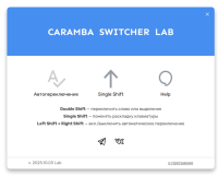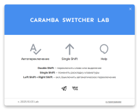 Caramba Switcher — это современный интеллектуальный инструмент для автоматического переключения раскладки клавиатуры, созданный специально для работы с русским, английским и немецким языками. Программа распознаёт язык ввода в реальном времени и избавляет пользователя от необходимости вручную переключать раскладку. Caramba Switcher Lab — экспериментальная версия для энтузиастов, желающих помочь в развитии проекта. Эта редакция в автоматическом режиме отправляет разработчикам анонимные данные об исключениях и сокращениях, чтобы улучшать языковую модель и делать продукт ещё точнее.